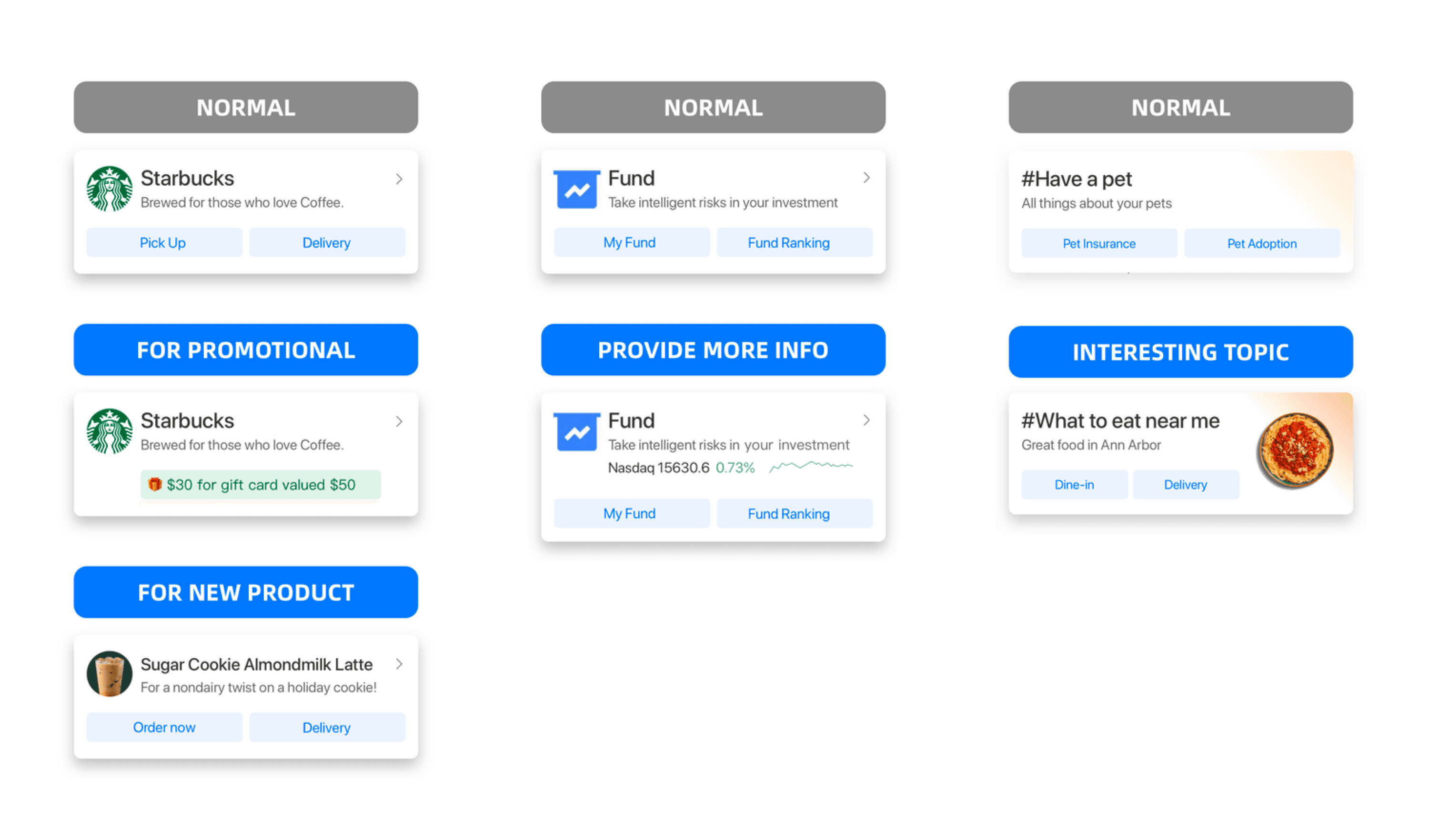 After the MVP launched, I also explored how this framework could support various needs, such as introducing new products, highlighting promotions, providing relevant information, and featuring engaging topics. This forward-thinking approach not only improved the SUG page but also set the stage for future enhancements.