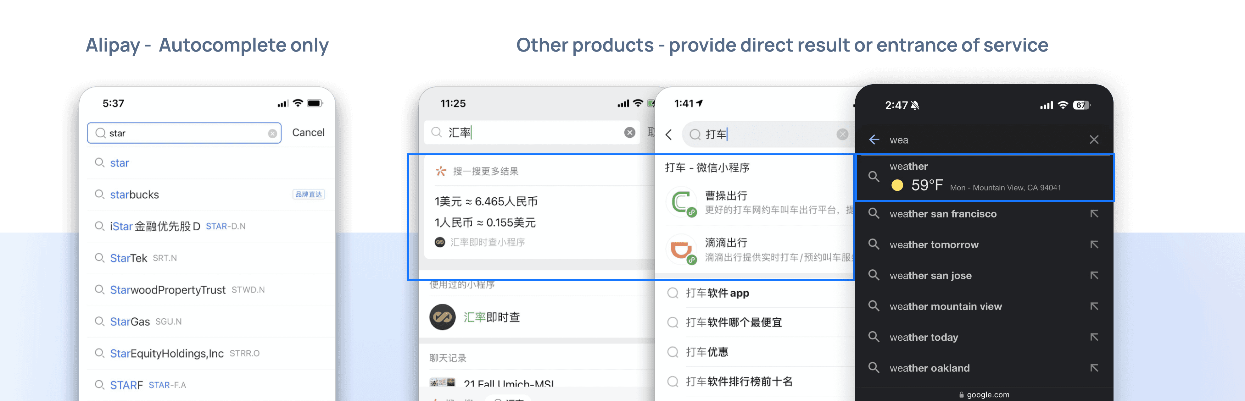 However, Alipay had so many different numerous services and users searched varied key terms, how do we provide relevant suggestions for diverse needs?