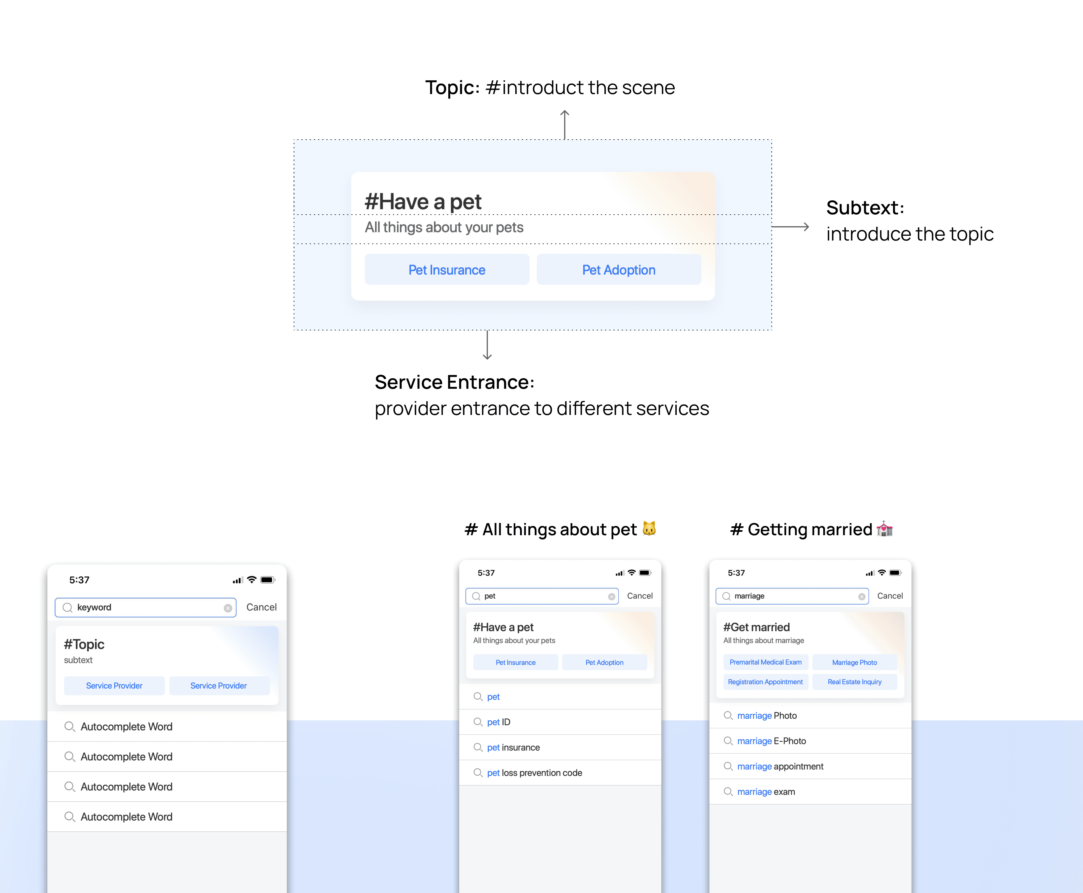 Redesigned the search suggestion page with the customized framework to help people get quick access to the specific service page.
